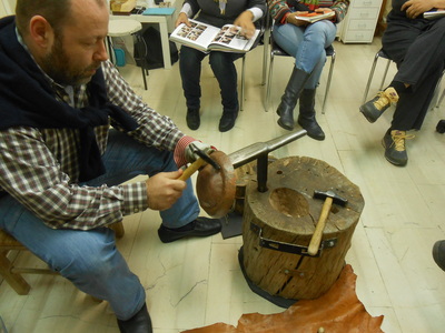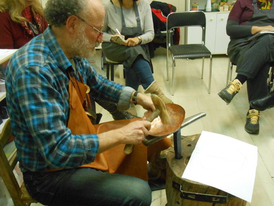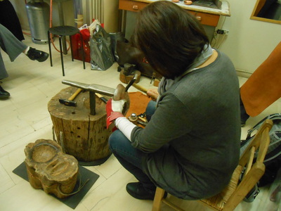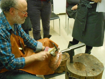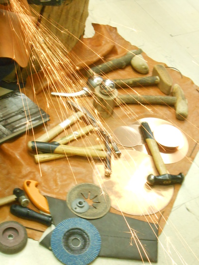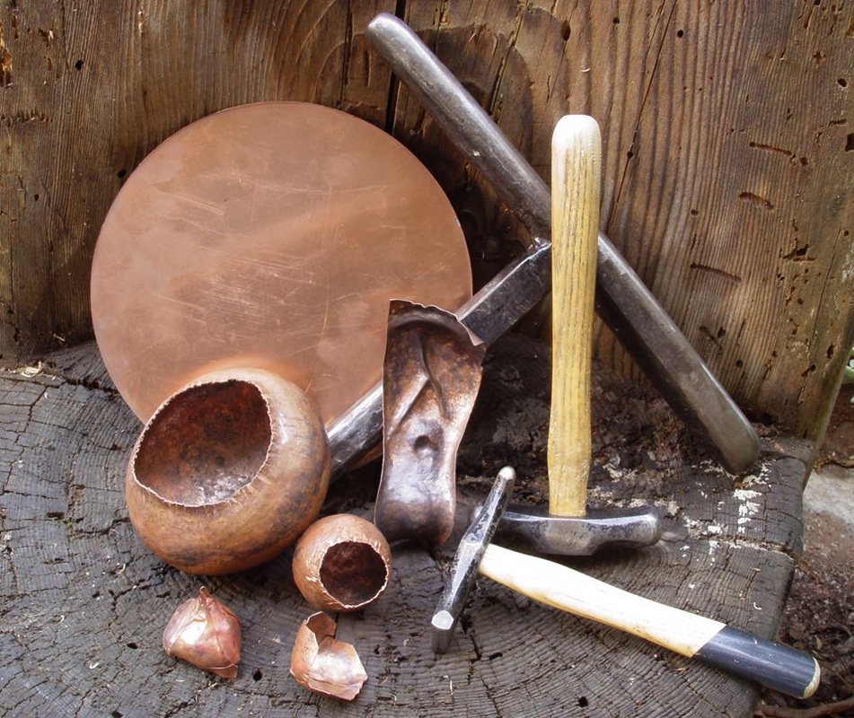 Η μεταμόρφωση ενός φύλλου μετάλλου σε αντικείμενο – κόσμημα τριών διαστάσεων είναι μια μαγική διαδικασία, που κρύβει μυστικά και εκπλήξεις.Το σφυρί ,το αμόνι και η φωτιά είναι τα εργαλεία ,αλλά ο ρυθμός και η αρμονία είναι η ψυχή της τεχνικής .Μέσω αυτής της διαδρομής θα προσπαθήσουμε να προσεγγίσουμε την διαμορφωτική σφυρηλάτηση ενός φύλλου χαλκού από το επίπεδο προς το κοίλο και τη φιάλη.