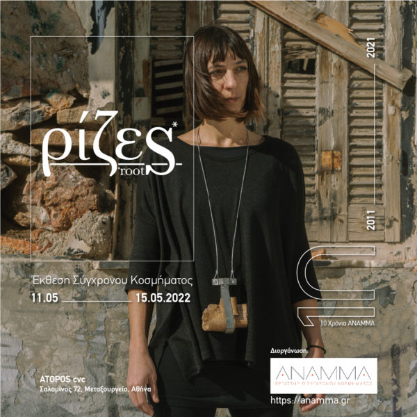 Με αφορμή τα 10 χρόνια λειτουργίας της, η σχολή σύγχρονου κοσμήματος ΑΝΑΜΜΑ διοργανώνει την επετειακή της έκθεση με τίτλο «ΡΙΖΕΣ» στο νεοκλασικό κτίριο της αίθουσας τέχνης ATOPOS cvc. Μια ομαδική έκθεση σύγχρονου κοσμήματος που εκκινεί από την έννοια της καταγωγής -τις ρίζες μας-, για να ανιχνεύσει την ουσία της πολιτισμικής και προσωπικής ταυτότητας, όπως διαμορφώθηκε και εξελίσσεται από γενιά σε γενιά.