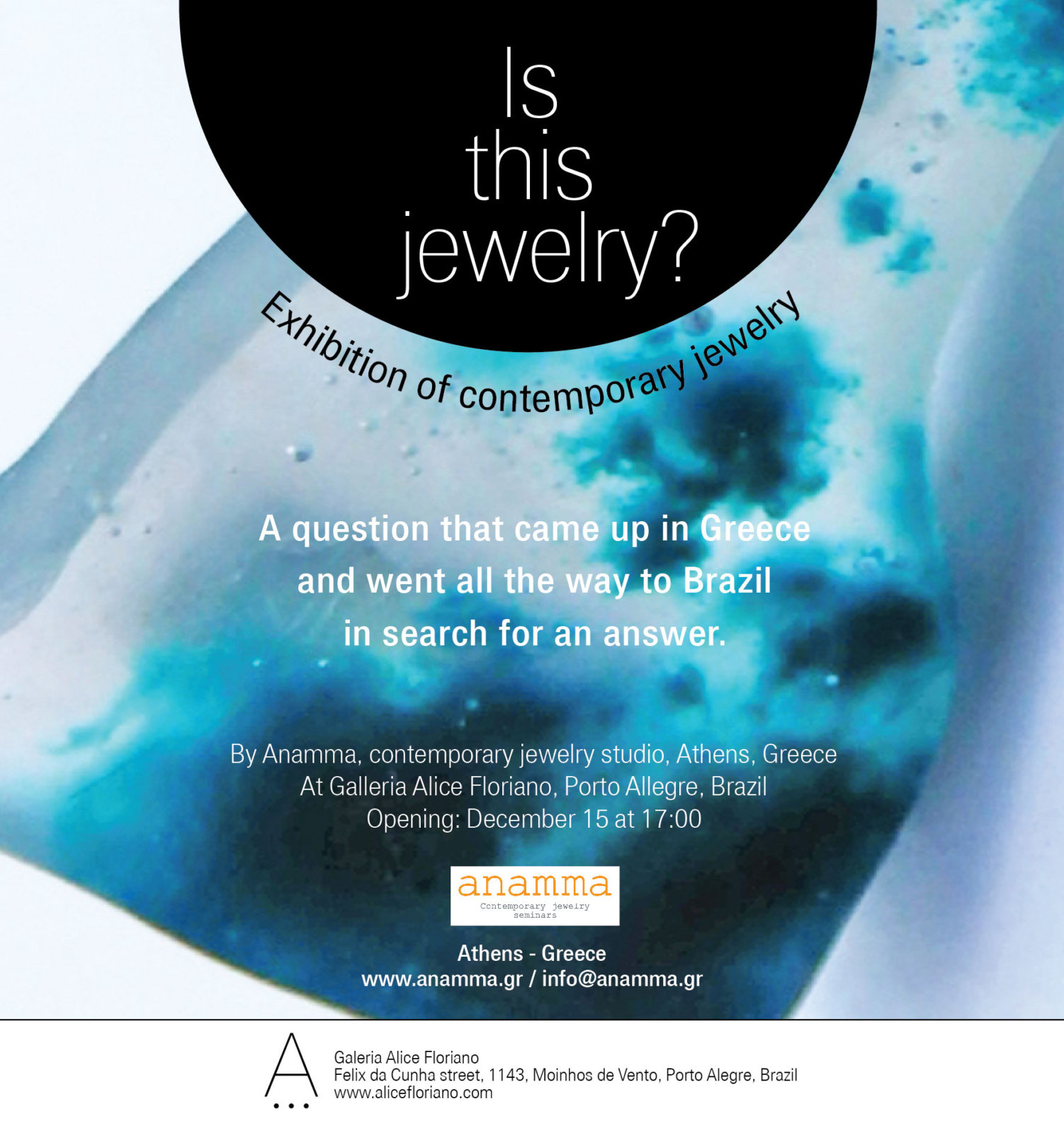 The exhibition “Is this jewelry?” does not have all the answers; but, it has numerous ideas to get the discussion started and also numerous creators and jewelry in order to make it an interesting one. Still, the most important is its desire to guide you through the fascinating world of contemporary jewelry, the way participants and creators are experiencing it. The journey of an exhibition by the students of Anamma studio from Greece all the way to Brazil in search of answers…